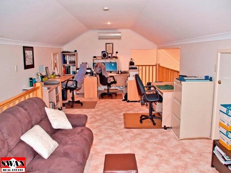 AND a fabulous loft area currently used as home office but would serve equally as well as home theatre or teenage retreat. Timber ballustrading is incorporated into a section of the loft which opens up to the family area so you can still be part of family life whilst in that upper area.