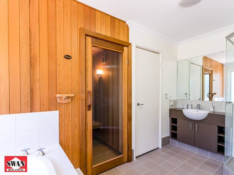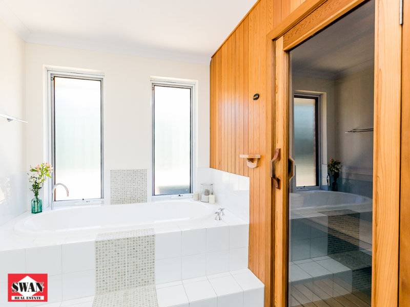 Continuing down the corridor there are 2 large bedrooms and the main bathroom. This has a large bath and a separate sauna, which is not a traditional feature in Australian homes but how absolutely divine on those cold winter days. Solid Jarrah flooring completes the picture.