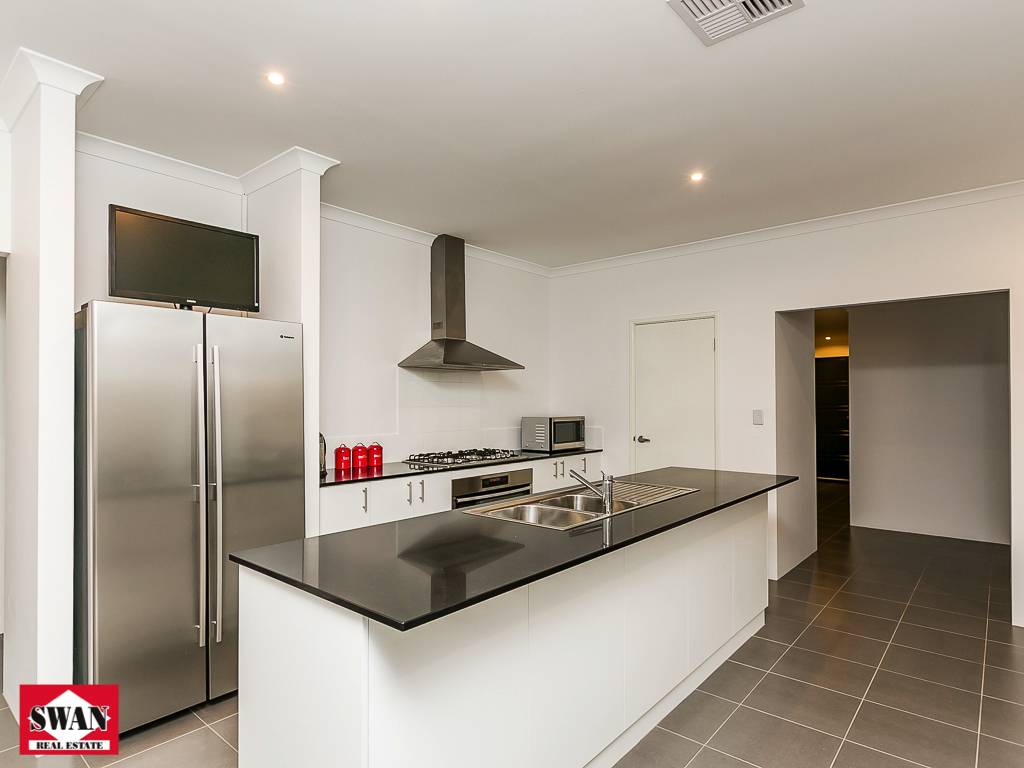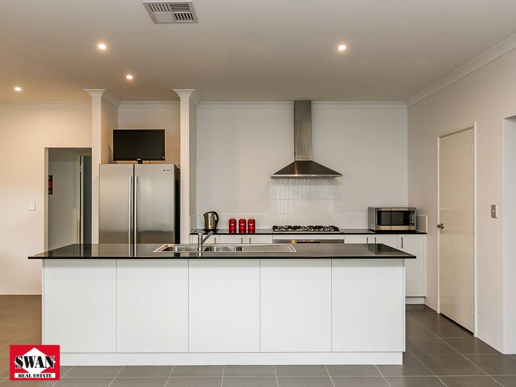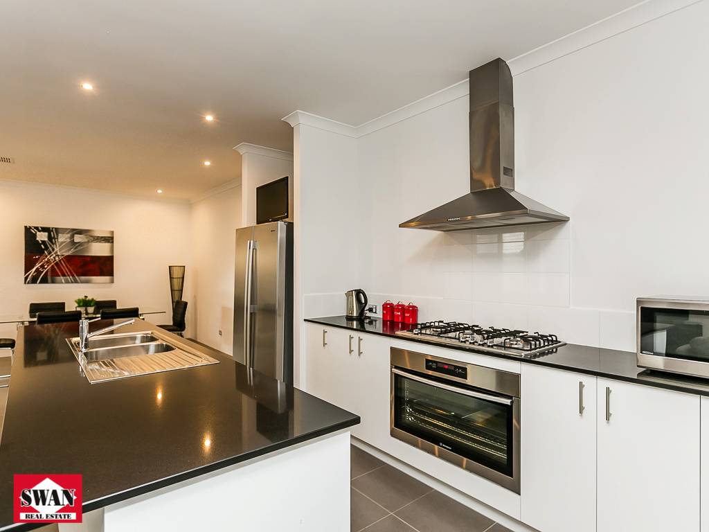 Central to the home and overlooking the family and dining areas is the well apportioned kitchen with Caesarstone island bench, electric oven and gas cooktop. Increased ceiling height in these areas add a feeling of space throughout.