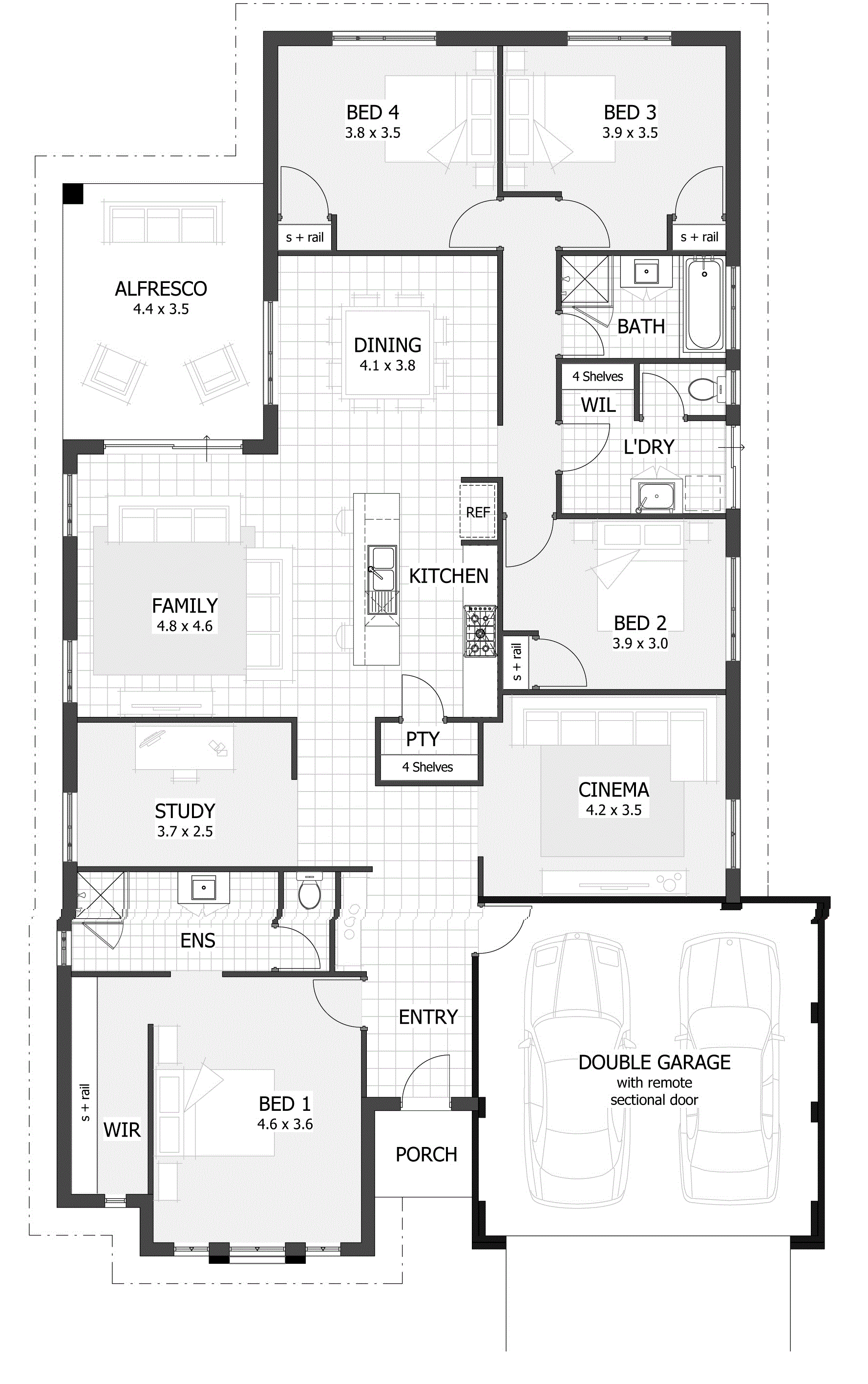 Increased ceiling height also extends to the double garage which has been specifically designed to accommodate 4 wheel drives with roof racks and other large vehicles.