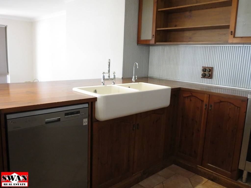 Chefs kitchen with timber cupboards, butlers sink and dishwasher