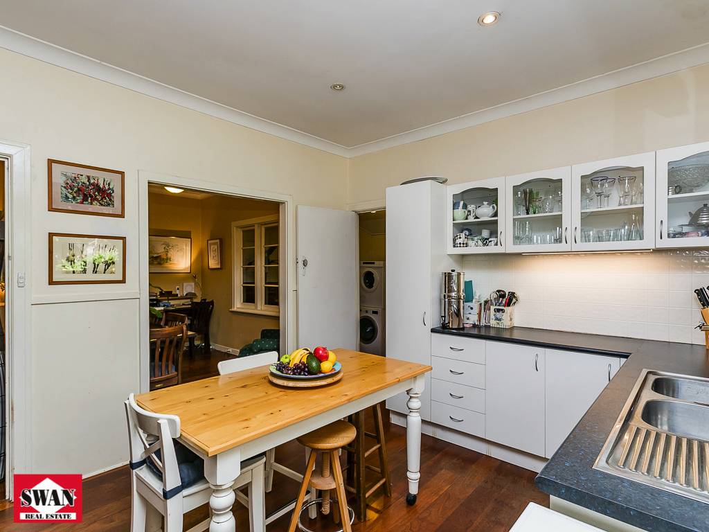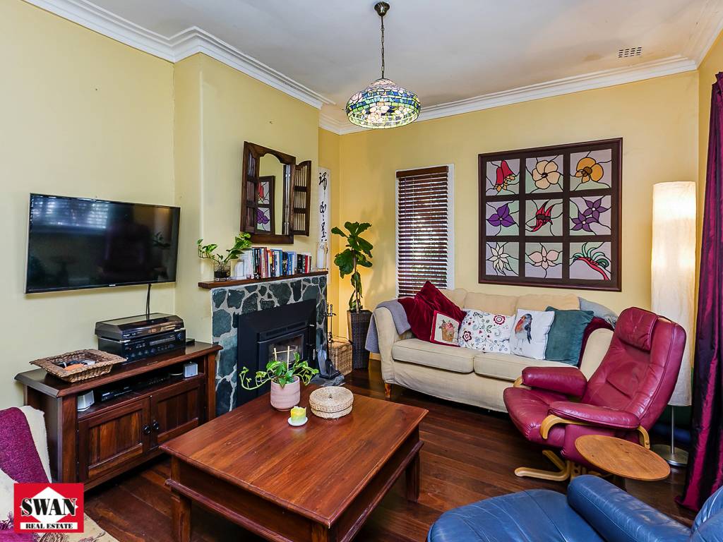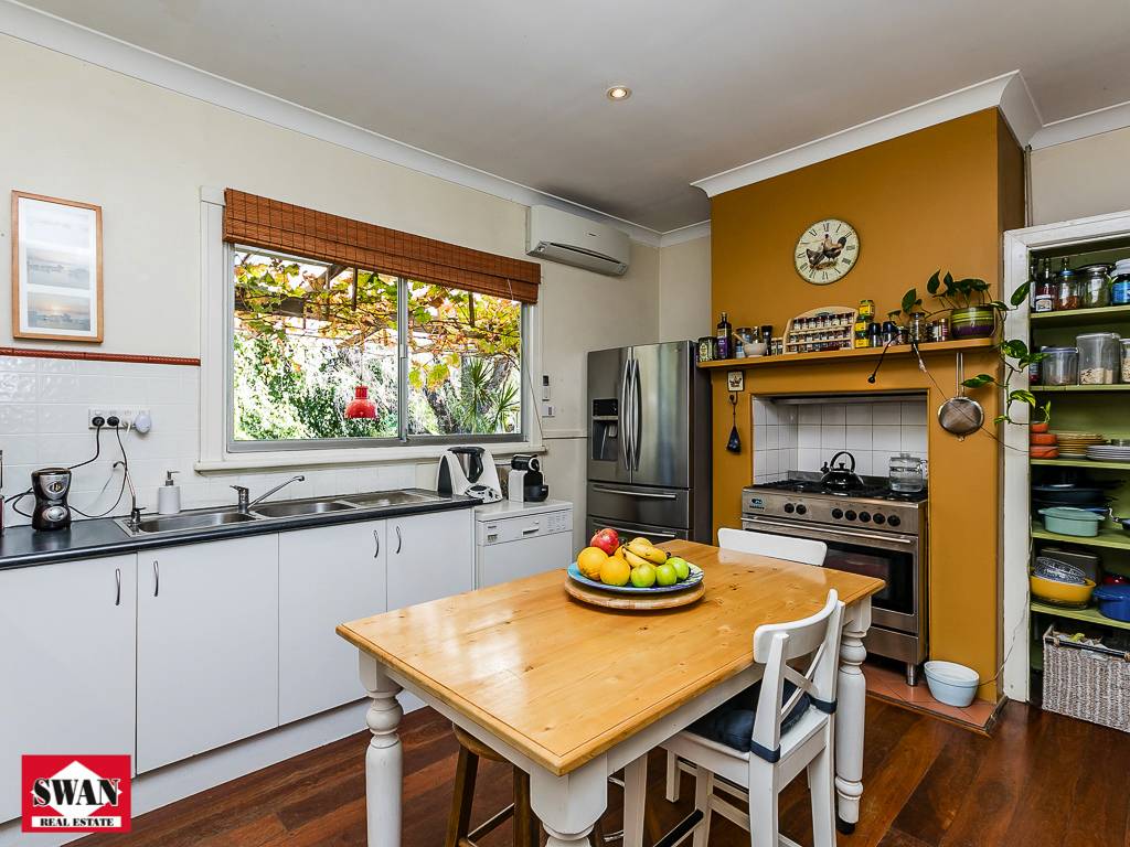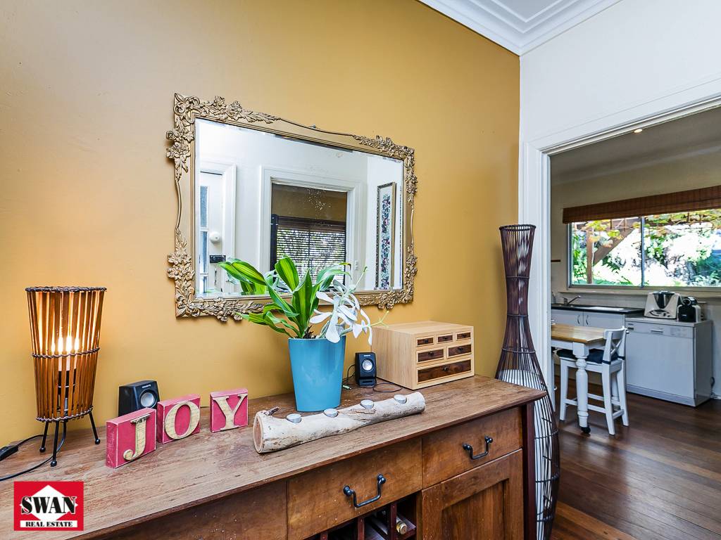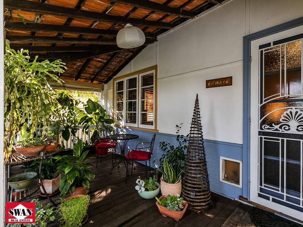 The cottage meets all expectations for its era, stepping up to the front porch to enter the home where the high ceilings and jarrah floorboards will immediately impress.