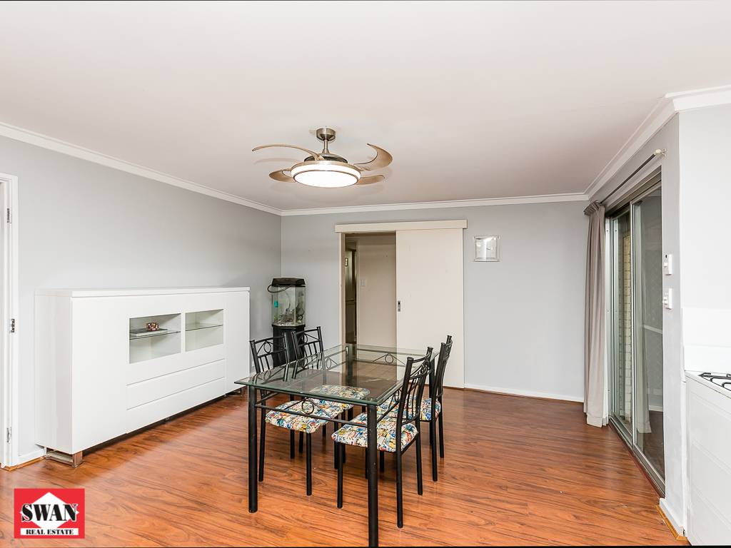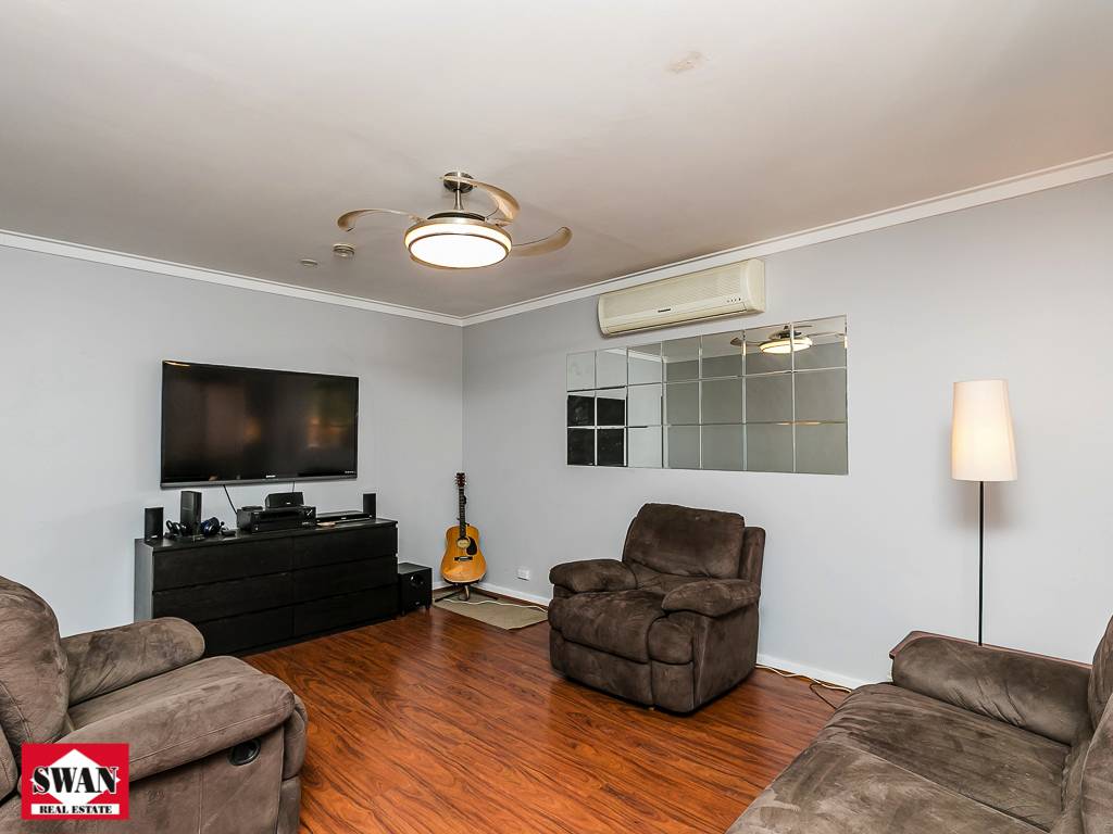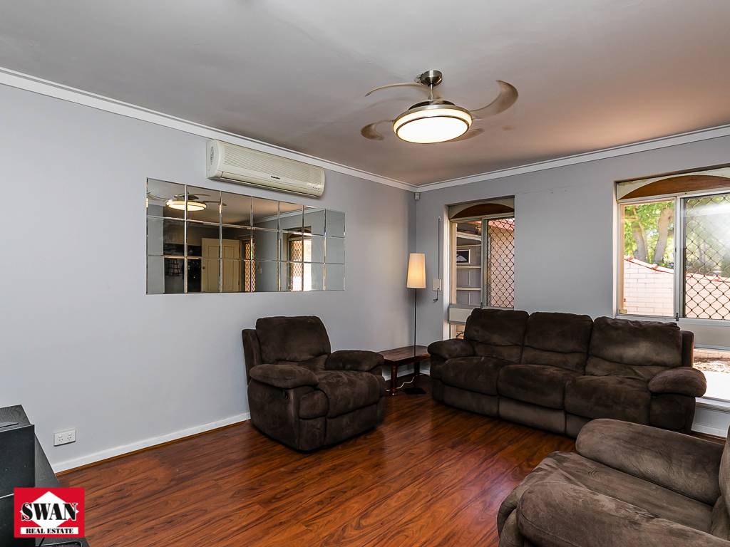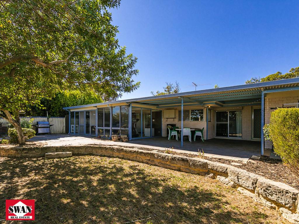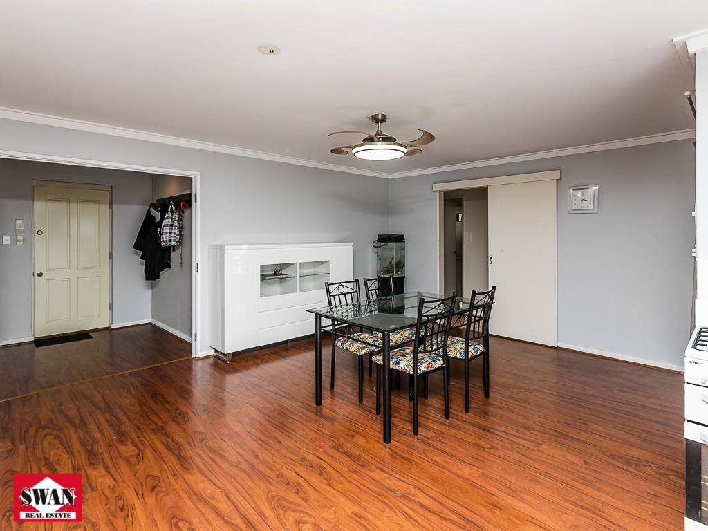 On entry, there is a good size sunken living room with split system air-conditioning and ceiling fan. This leads onto the modernised open plan kitchen and dining area featuring neutral colours, butlers sink and plenty of room for additional storage.