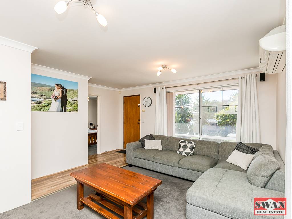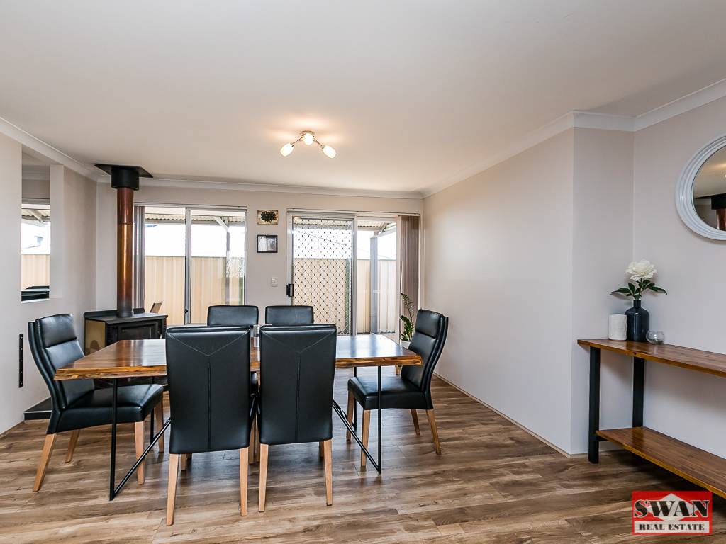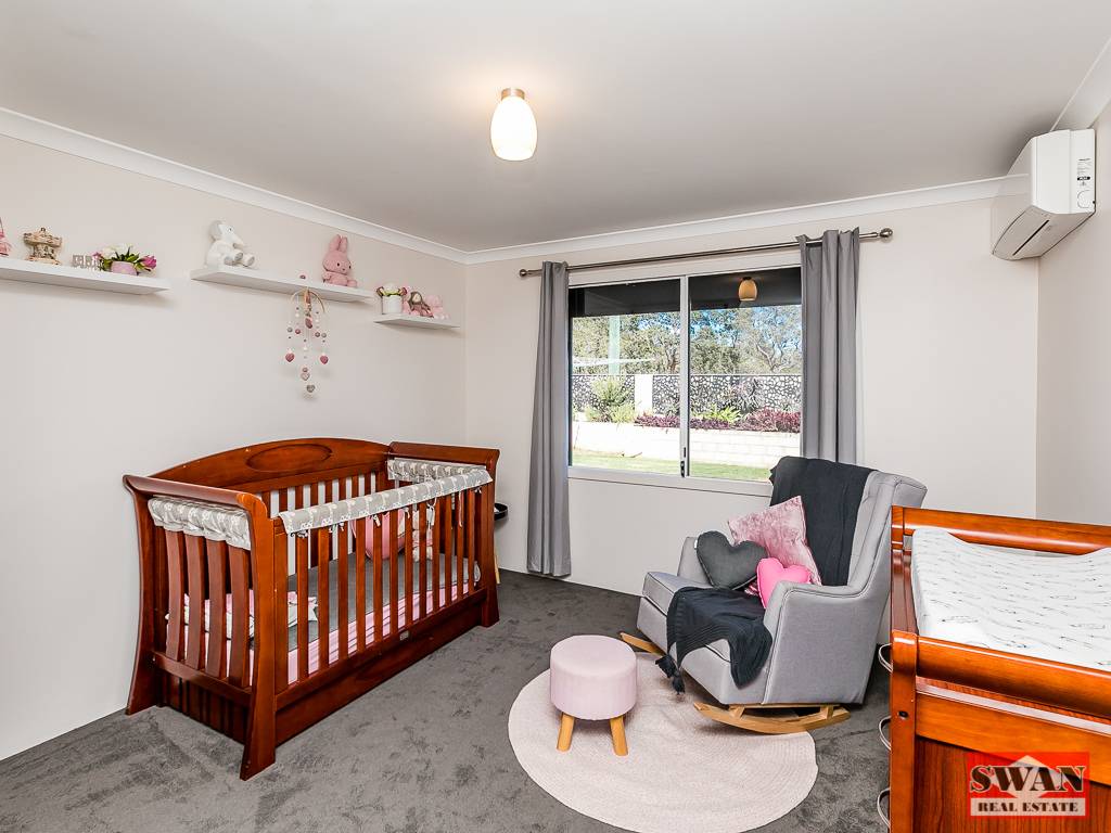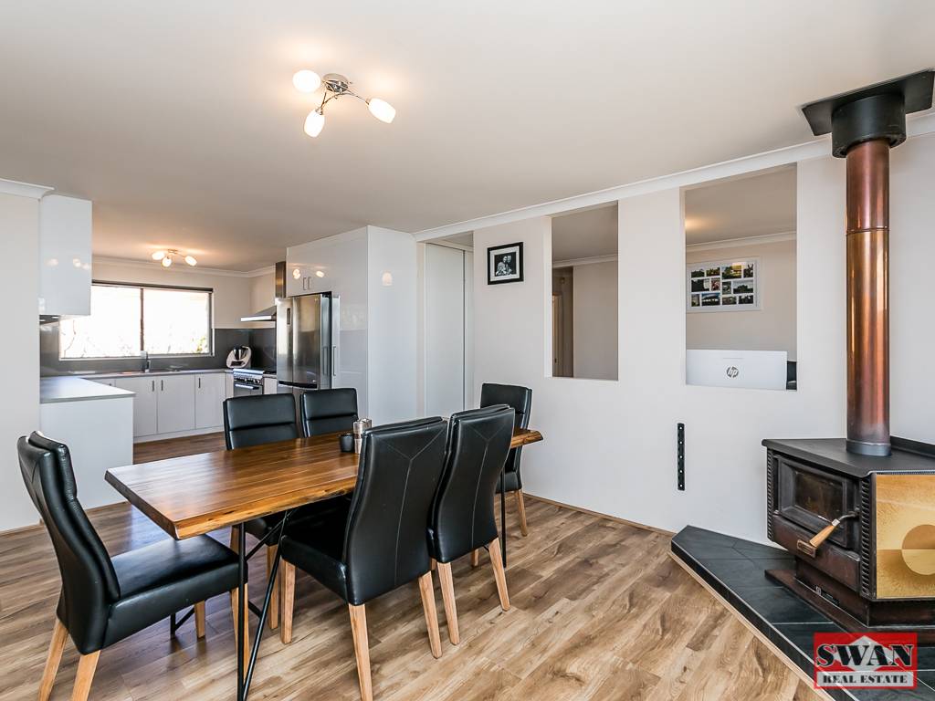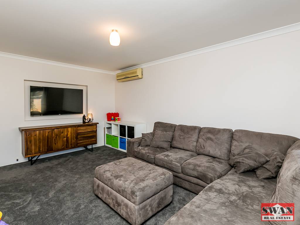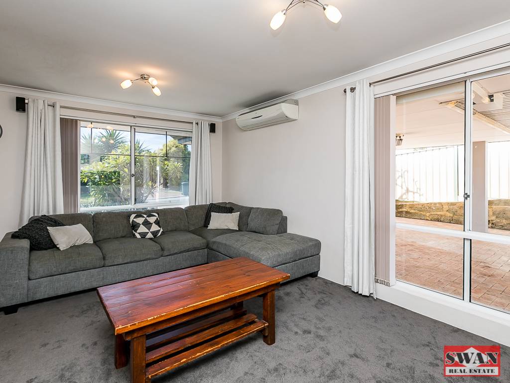 A spacious formal lounge greets you as you enter and the large windows allow the natural light in, whilst heavy curtains are there to keep the light out. A split system air conditioner is one of many in the house.