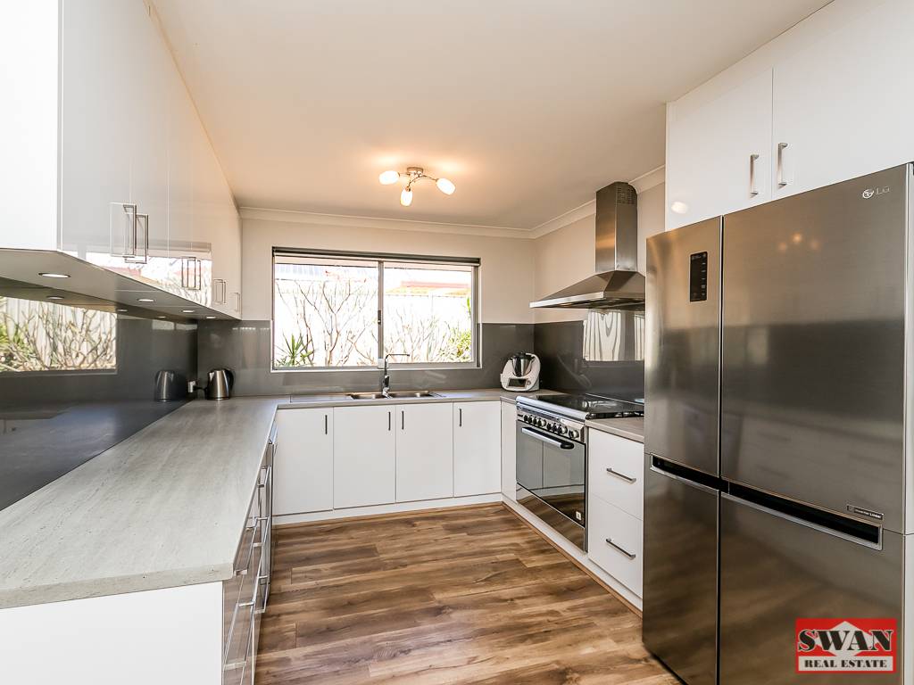The dishwasher, stainless steel gas cooker and range, loads of bench space and cupboard space, large fridge recess.....WOW!