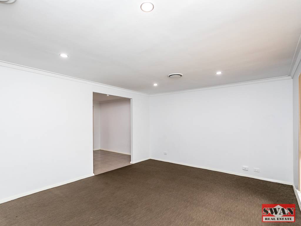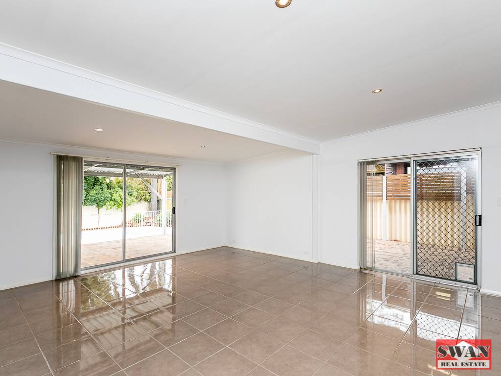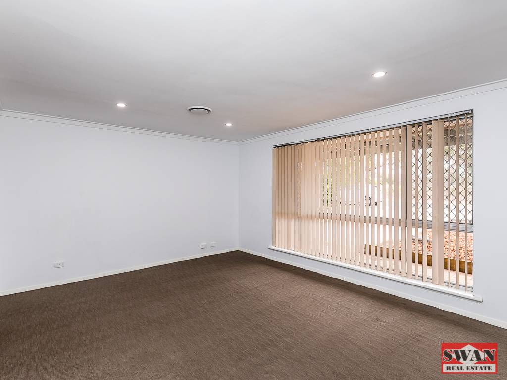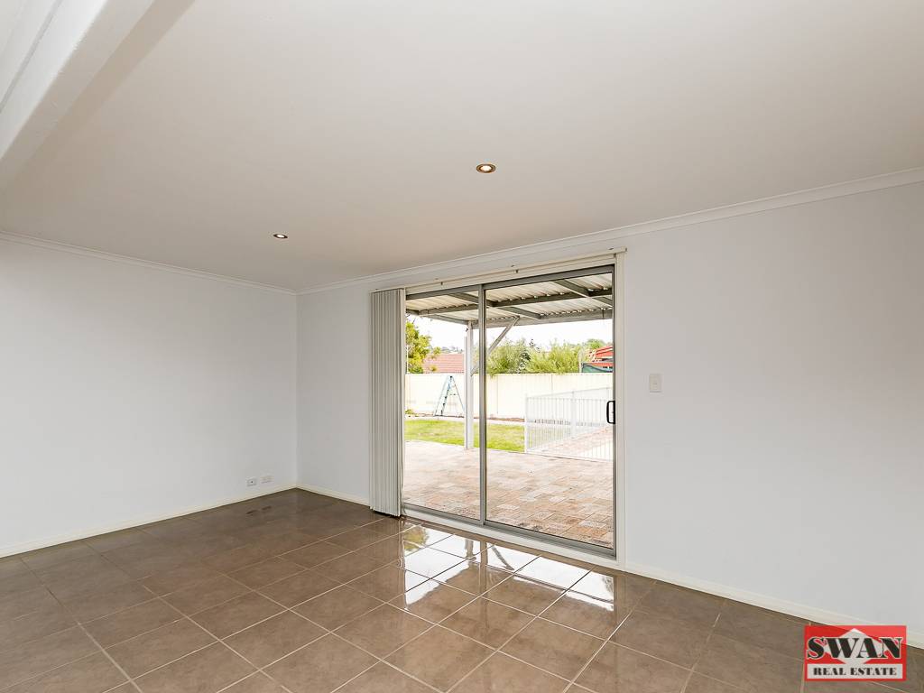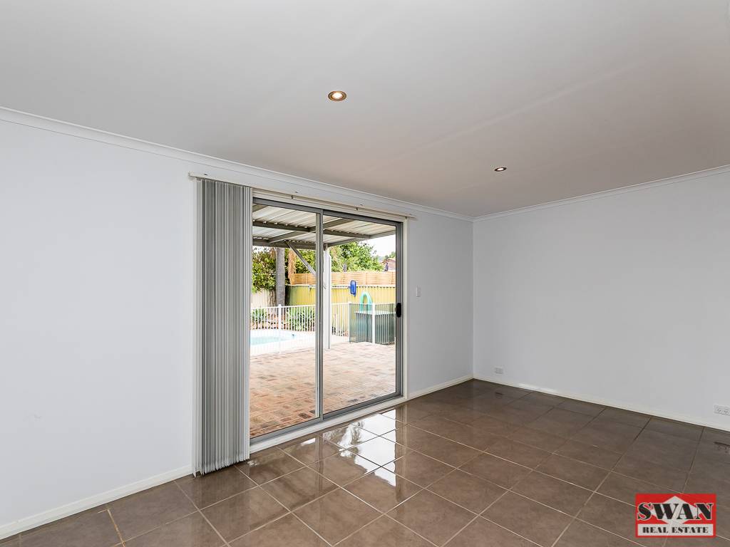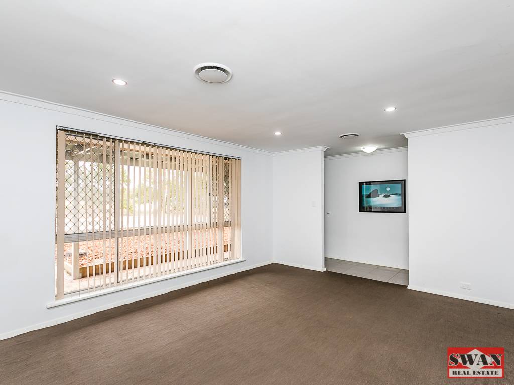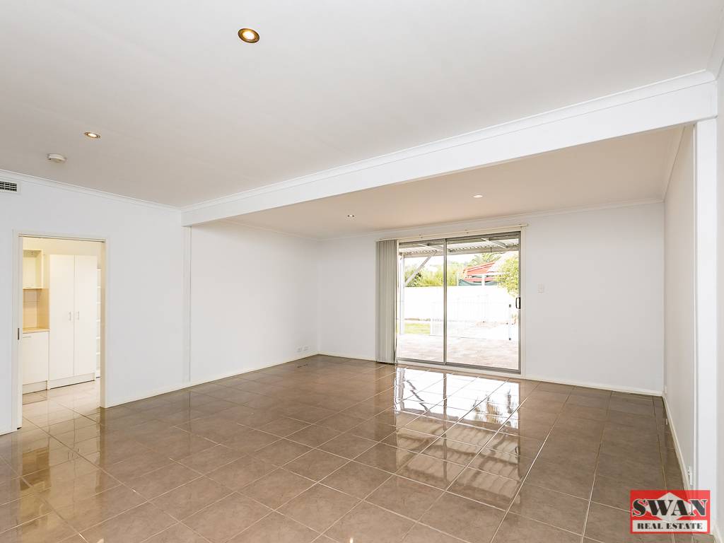 This open plan area includes the dining/meals and the spacious family room, all tiled and with raked ceilings which gives this living area more space and light.