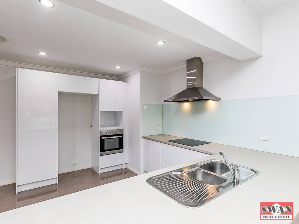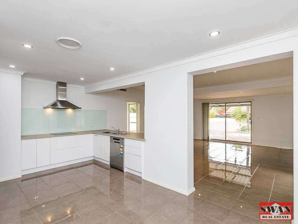 The Large lounge leads into the remodelled and very practical kitchen that has plenty of bench space and cupboards, induction cooktop and dishwasher.