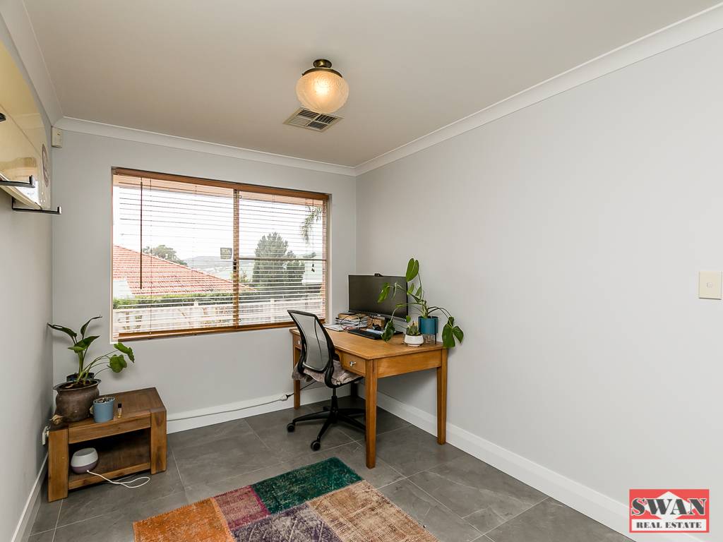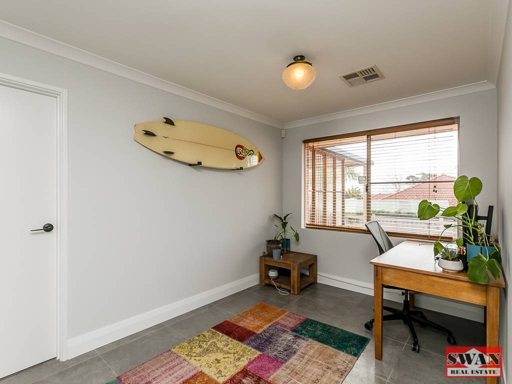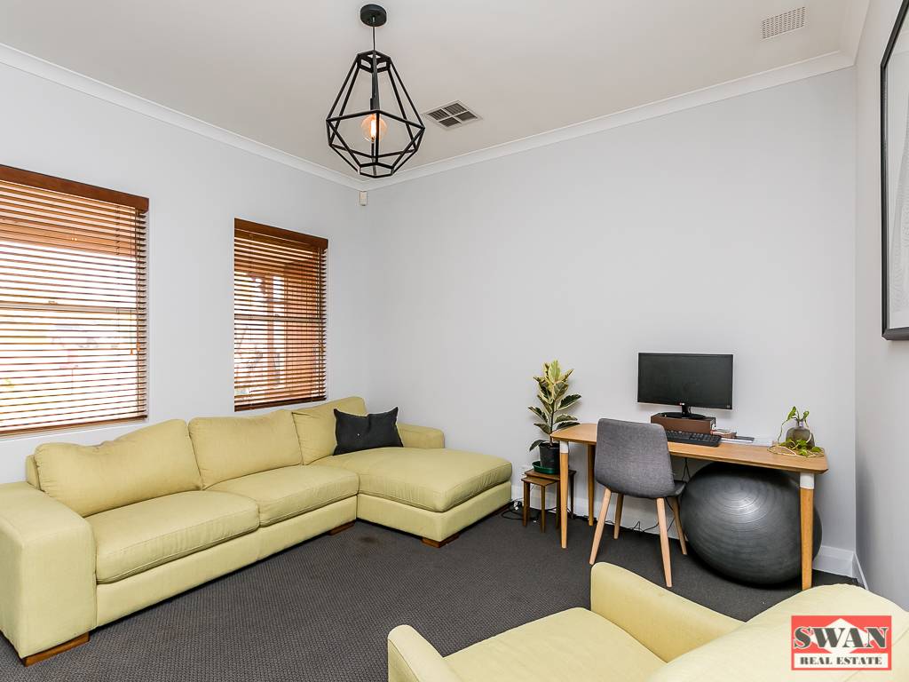 Situated at the front of the home is a sunken lounge room with high ceilings and timber blinds.  Stepping up, you are taken to the master bedroom including a good size walk-in robe, ensuite and supplementing the ducted air-conditioning is a split system and ceiling fan.