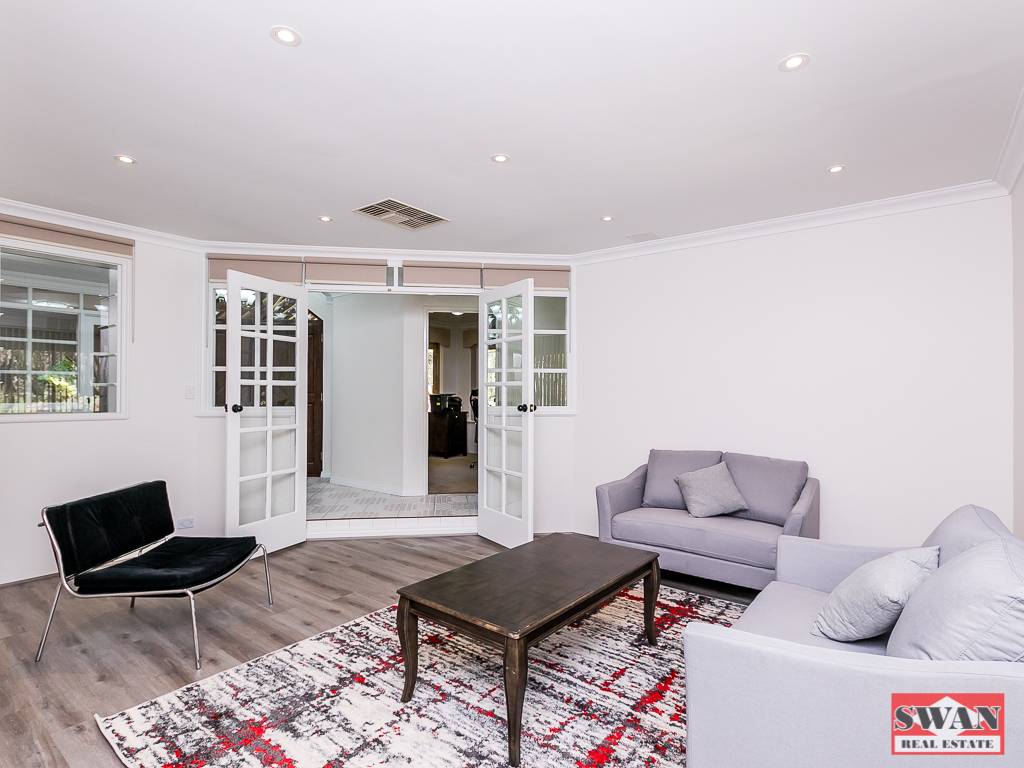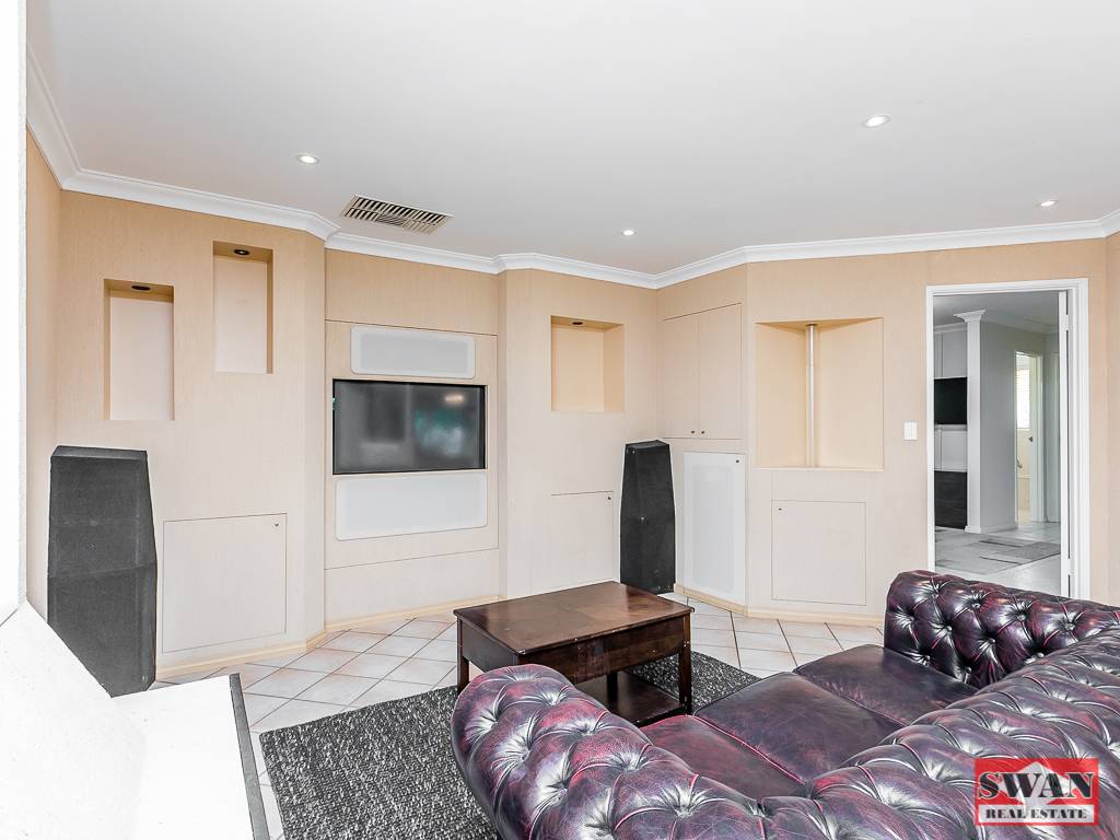 There are both formal and informal living areas throughout this house, including a sunken lounge/theatre room which has a lovely bright outlook into the garden and the multitude of birds during the day, but when it's time to watch a movie, it then closes off to be the darkest theatre room with double glazed interior windows, block out interior blinds and a roller shutter.