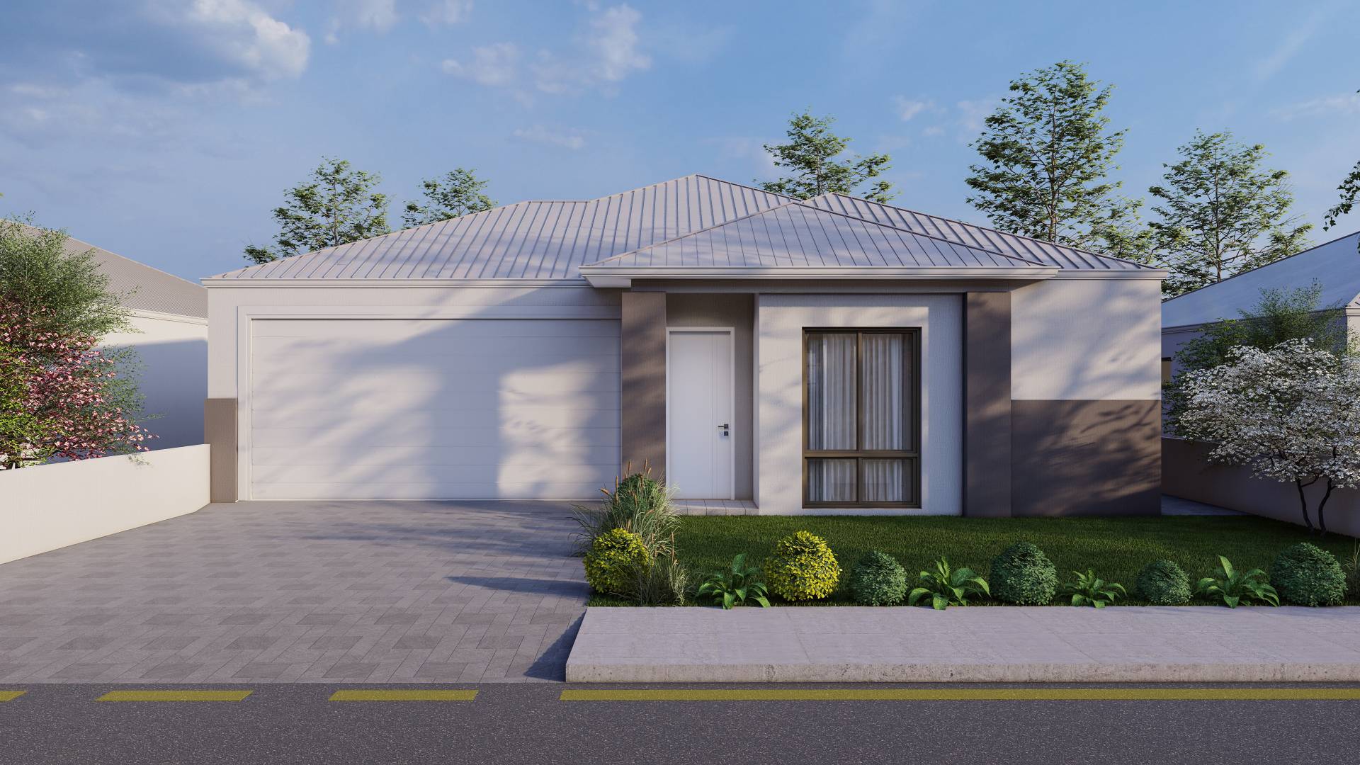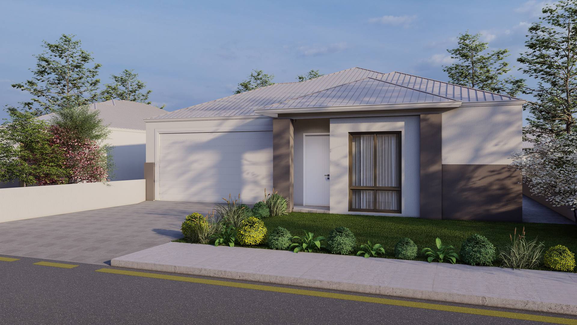 Double lock-up garage with remote control sectional door (where drawn)