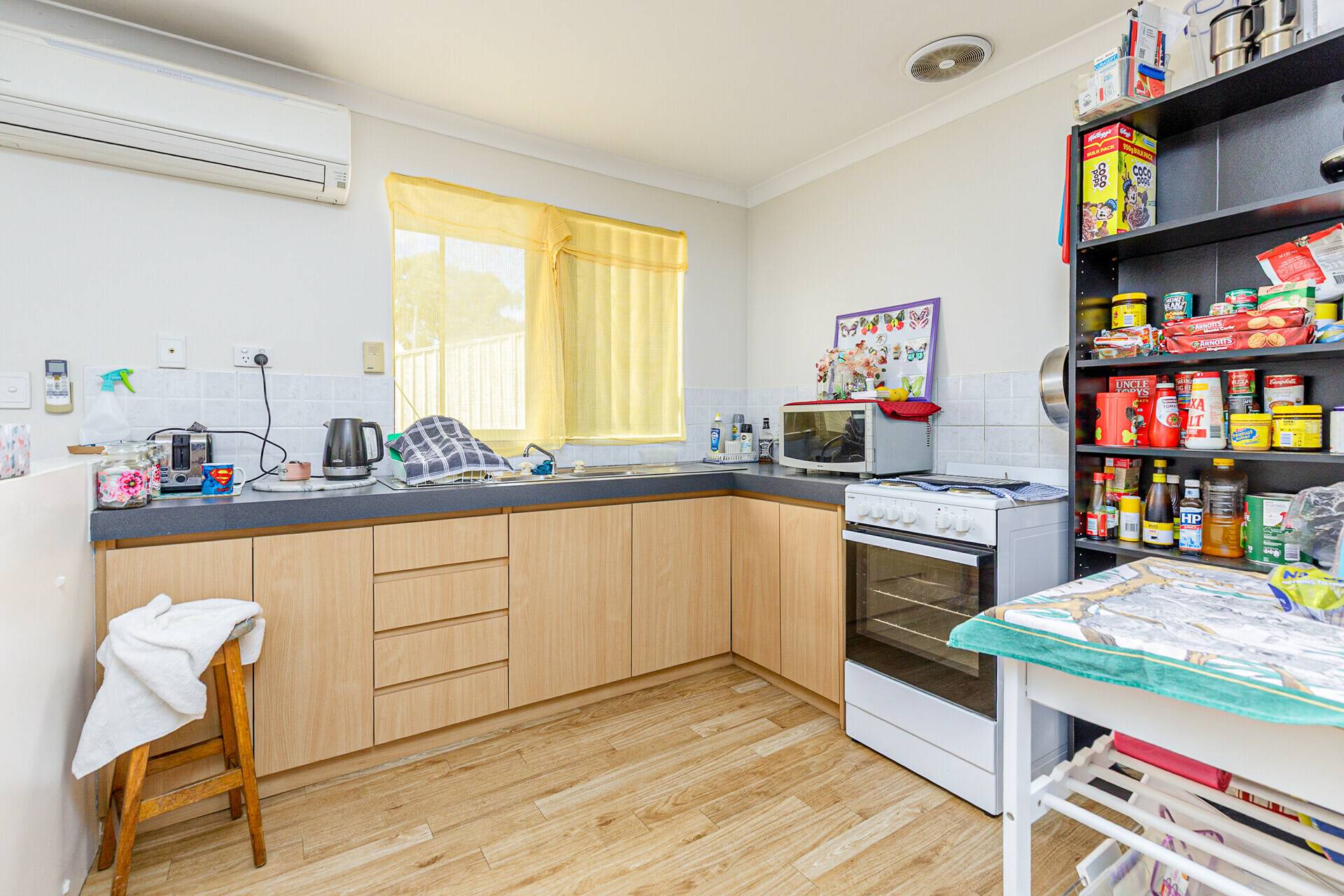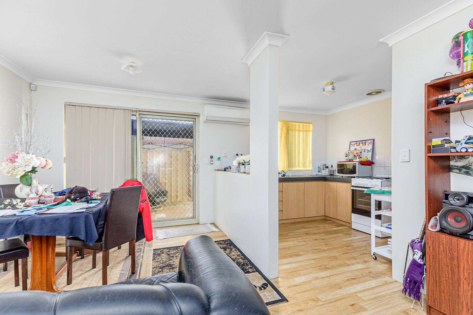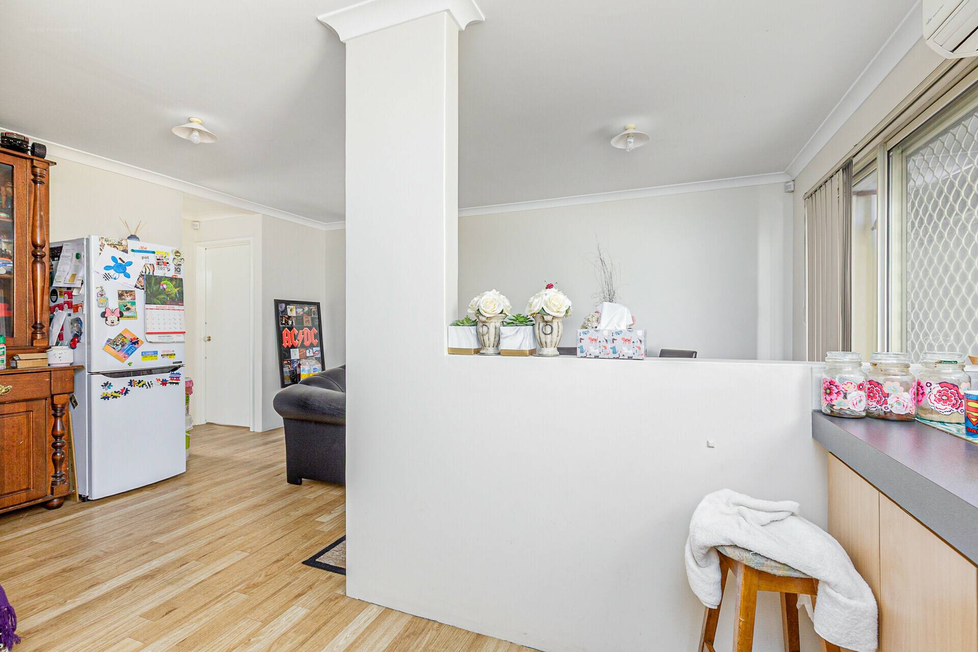 The two living areas consist of a front lounge as well as the open plan kitchen/meals/family hub. Both have large windows to let the natural light in and the open plan area has a split system air conditioner, with hard wearing floors throughout.