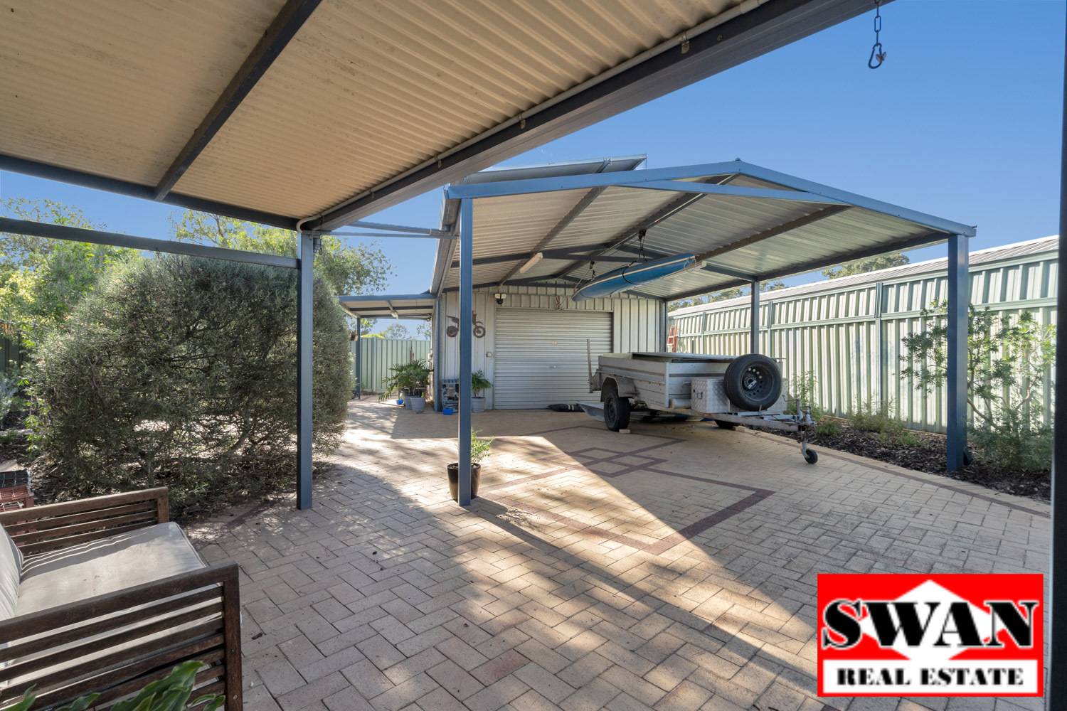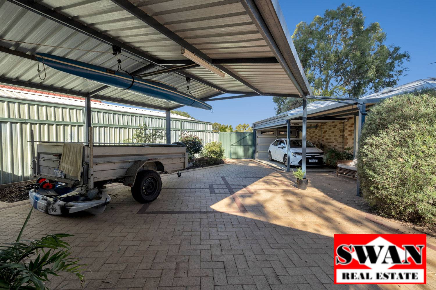 There is plenty of parking behind the fenceline, as the carport adjoins a large freestanding carport that has plenty of room for more vehicles as well as campers etc.