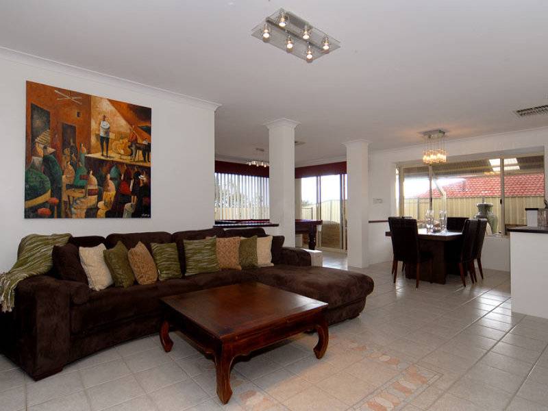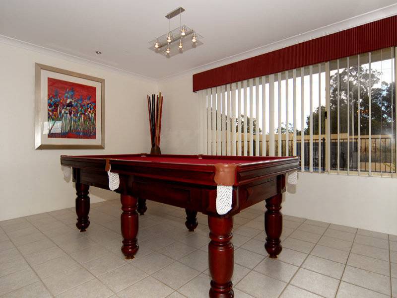 Co-ordinating throughout the home are crystal light fittings, quality carpets and drapes with pelmets and besides the formal lounge situated at the front of the home there is a secondary living/family area and games room separated by pillars and a demi wall.