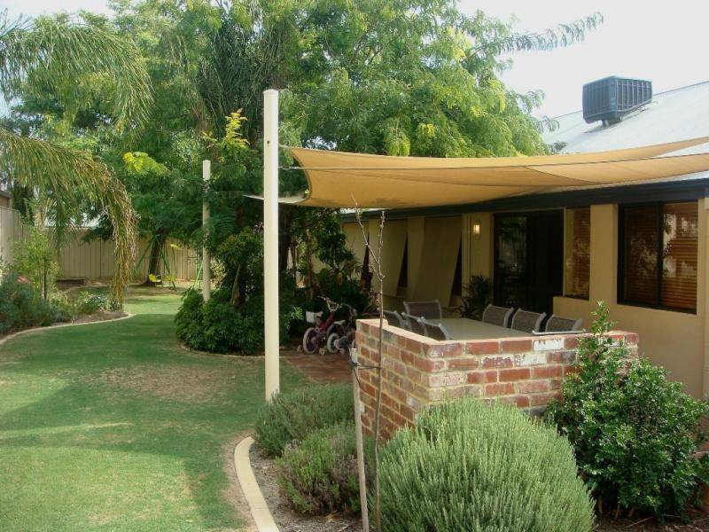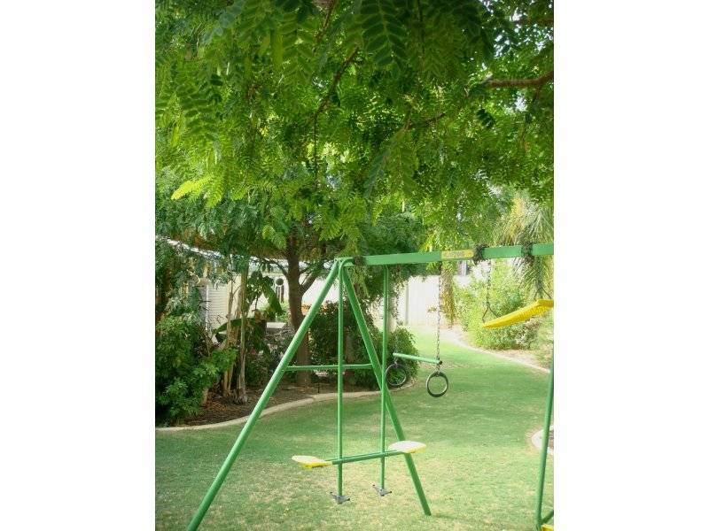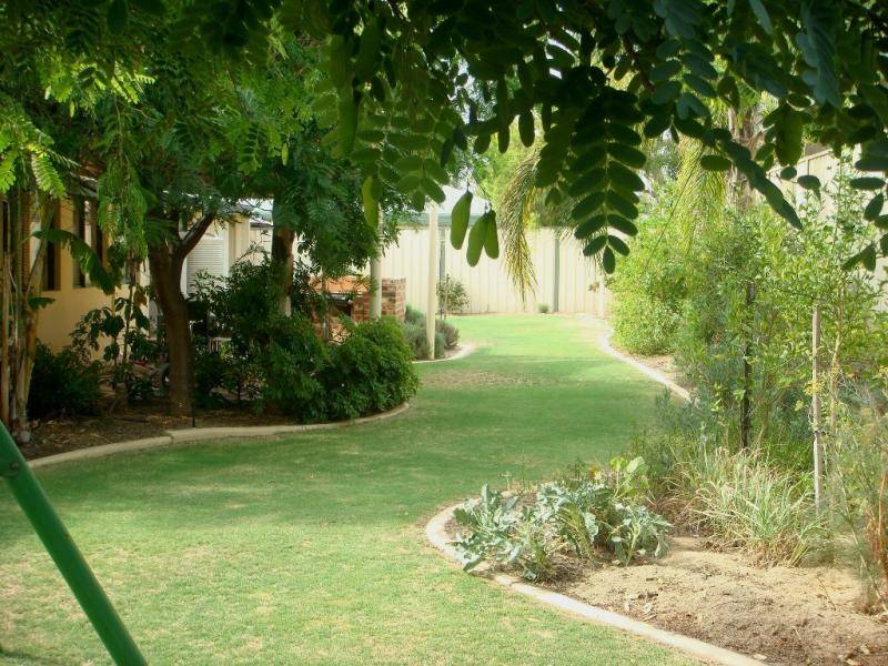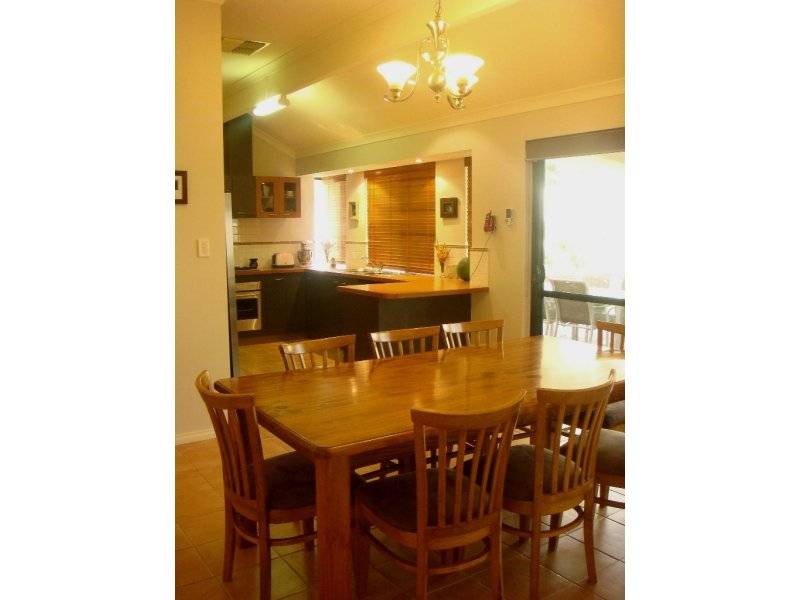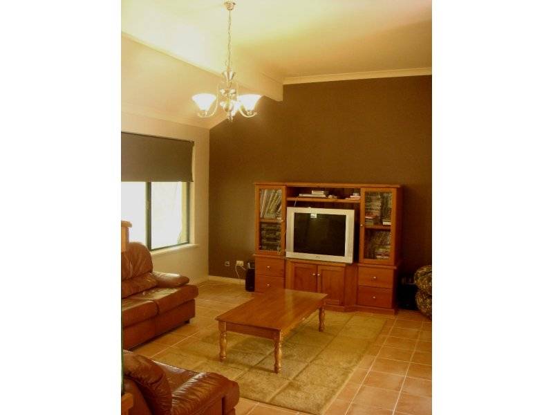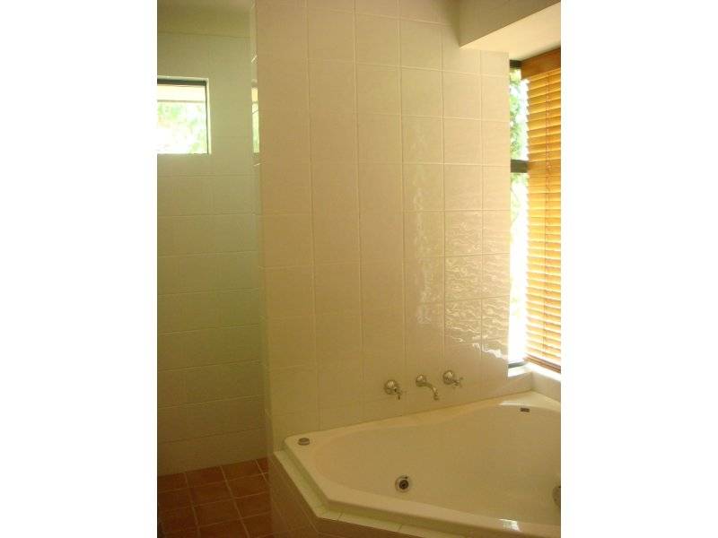 One wing of the home accommodates the master bedroom whilst the other wing includes the secondary bedrooms and main bathroom which has a spa bath and shower cleverly hidden behind a wall and therefore not requiring glass screens making it absolutely maintenance free, and the other extra is the wall tiling directly up to the ceiling. There is fully ducted evaporative air conditioning, double remote garage and the gardens are quite delightful and rear access could be achieved with some minor modification.
