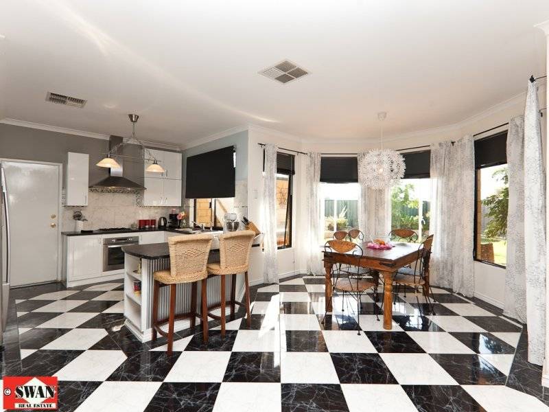 You would expect to find this property in the pages of Vogue magazine, with bold designer statements throughout the home. These statements start off with the hallway and its granite feature wall and extensive use of black and white tiles complimented by mini orb in the trendy kitchen and contrasted with soft flowing drapes.
