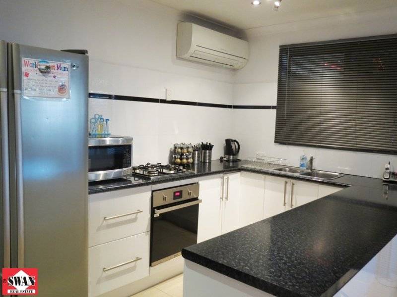 Besides the double garage and extra forecourt parking there is a good size shed/workshop and there is a security system in place for peace of mind. The kitchen is very well apportioned and has the trendy, monochromatic look. There is a fully ducted evaporative air conditioning and the family bathroom is oversized.